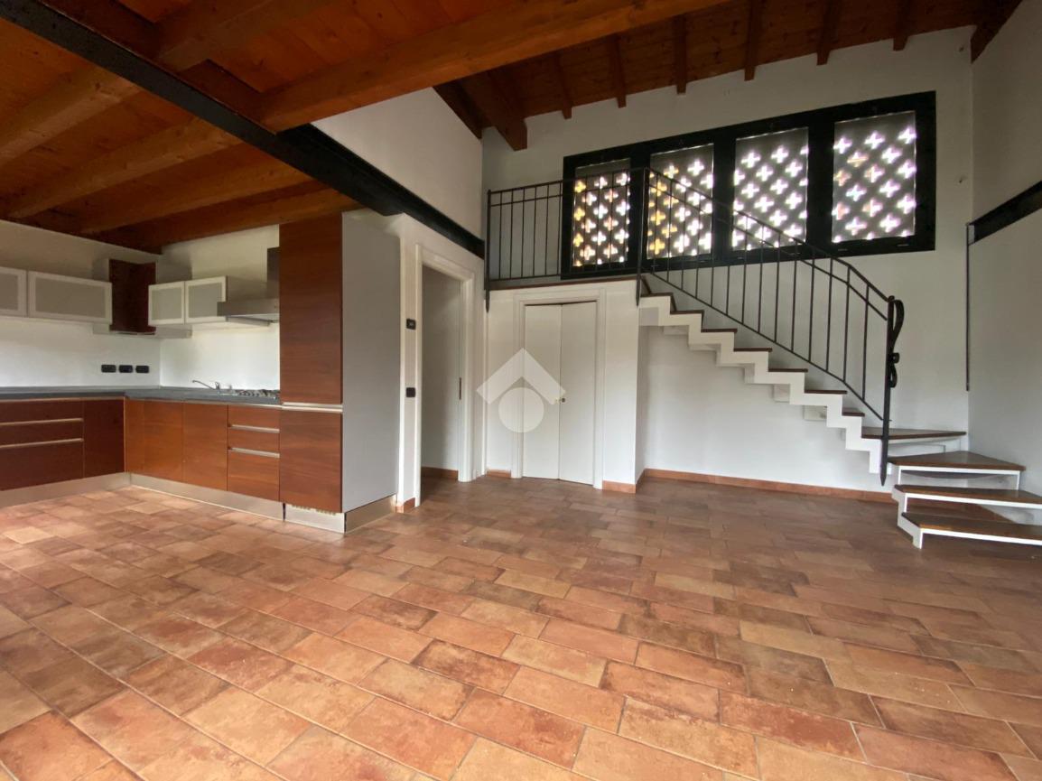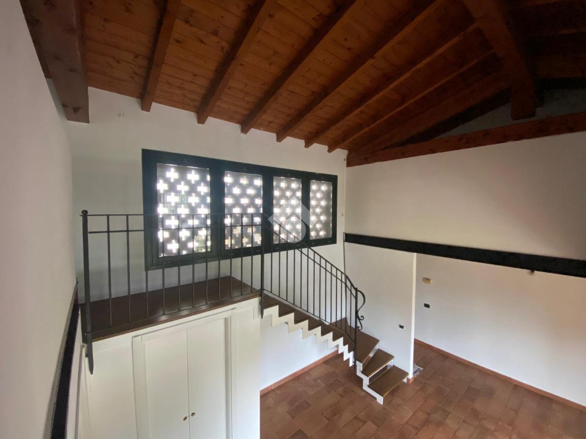 SOLUZIONE PROPOSTA: Bilocale posto al piano terra con ingresso indipendente, suddiviso in spazioso e luminoso soggiorno con cucina a vista già arredata, disimpegno e bagno con box doccia. Scala interna in muratura con ringhiera in ferro battuto, dotata di pratico sottoscala ad uso ripostiglio, che collega al soppalco ad uso camera da letto.