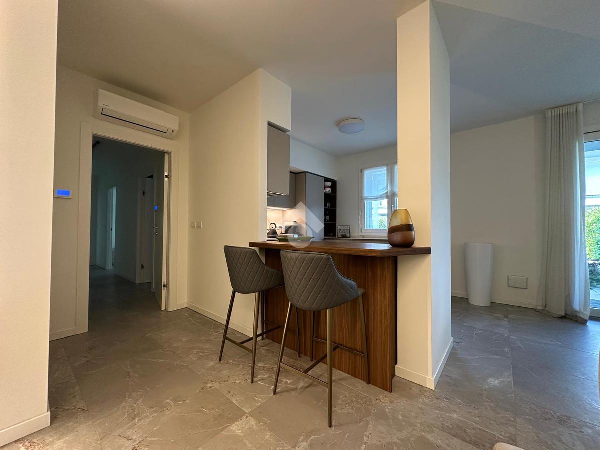 L’abitazione signorile vanta di finiture di pregio con una distribuzione ottimale degli spazi ed arredi studiati a misura per il massimo confort. Posta al piano terra con giardino privato di 250 mq, si compone di tre locali oltre doppi servizi, cabina armadio e ripostiglio.