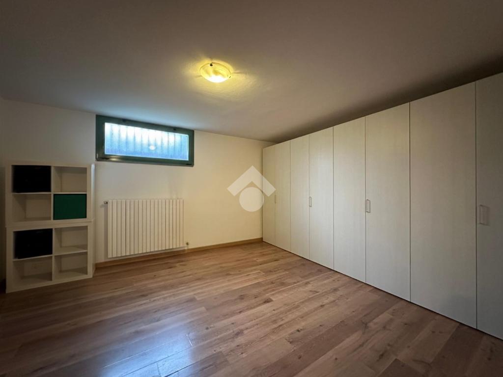 Dal soggiorno una scala interna conduce alla taverna di circa 60 mq posta al piano seminterrato: un ampio locale finestrato e riscaldato, ideale come zona hobby, completato da un funzionale bagno-lavanderia con box doccia. Il disimpegno conduce alla zona notte che ospita la camera matrimoniale, una cameretta e il bagno principale dotato di vasca e sanitari sospesi.